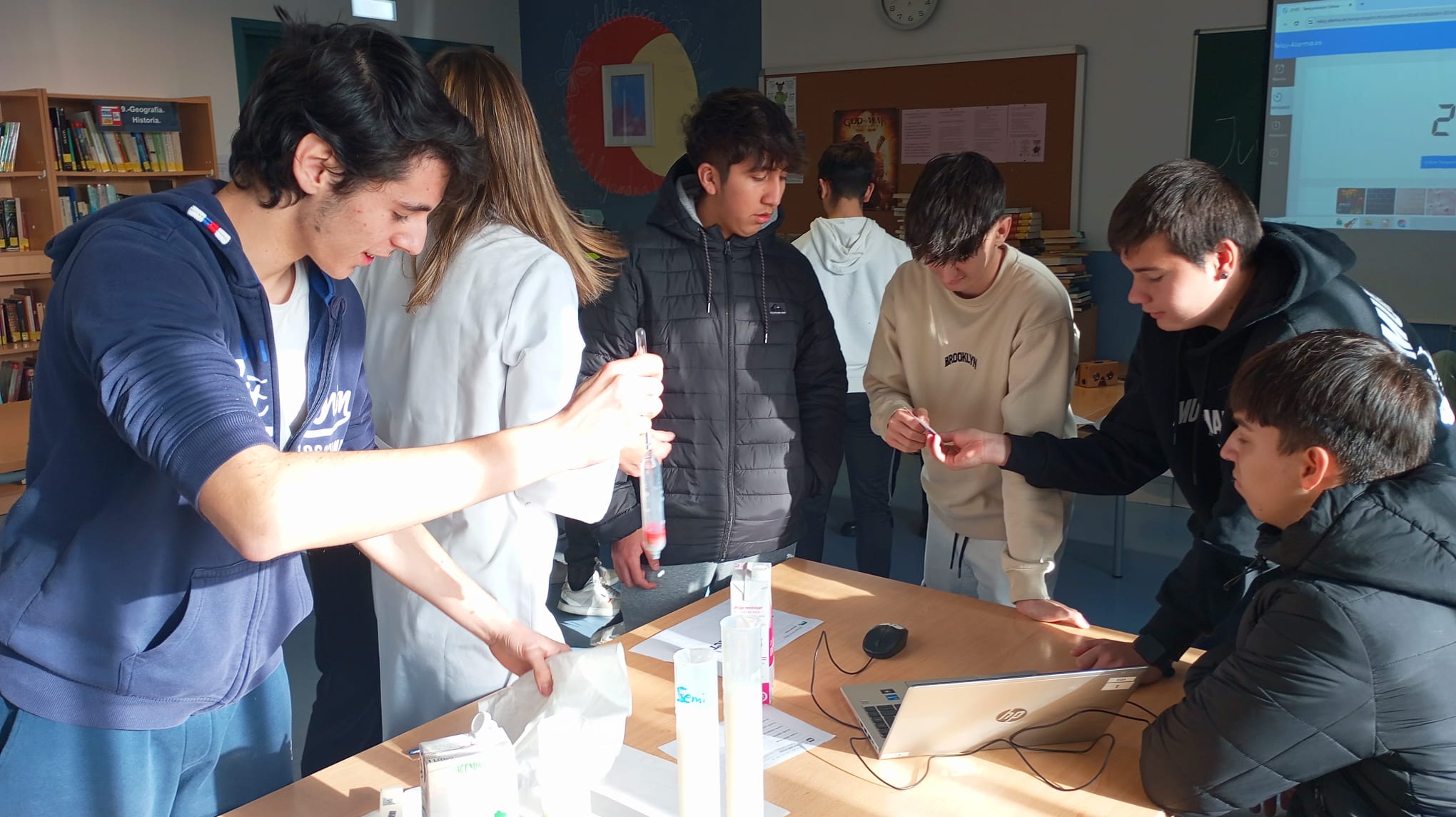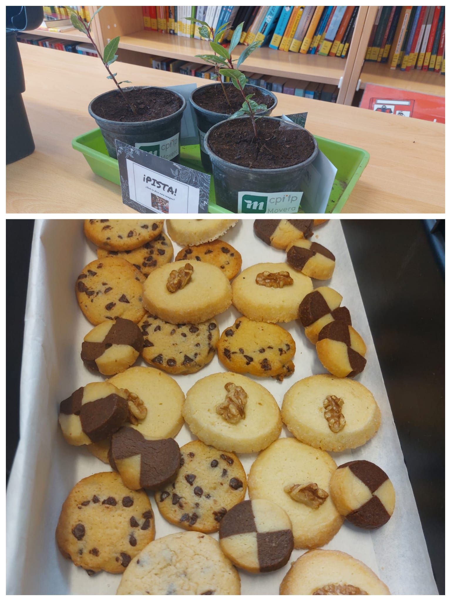 Hoy hemos tenido el placer de contar con la participación de 3 profesoras, Ana, Silvia y Carolina del CPIFP Movera que han impartido un taller espectacular para alumnado de 4.º de ESO y Bachillerato con el fin de promocionar los ciclos de industria alimentaria que imparten. Ha sido un «Escape Food» donde el alumnado ha podido hacer prácticas con alimentos, se han puesto gafas de realidad virtual, han tenido que buscar información especializada… Afortunadamente todos los grupos han conseguido el reto y se han ido con muy buen sabor de boca, nunca mejor dicho ya que han podido degustar unas deliciosas galletas elaboradas por alumnado de grado medio de pastelería. También les han obsequiado con una planta que deberán cuidar hasta junio, ésta, preparada por el asignado de jardinería .